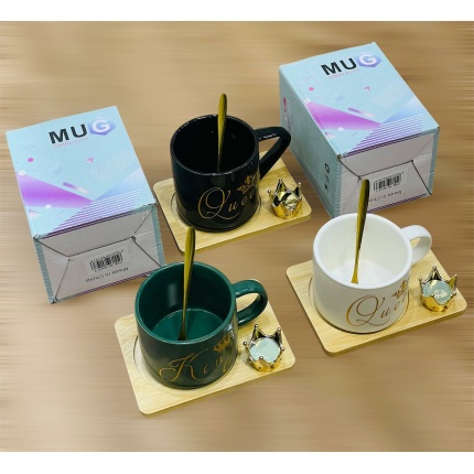 PREMIUM DESIGN CERAMIC COFFEE MUG WITH SAUCER, SPOON