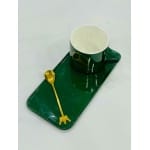 CERAMIC COFFEE MUG WITH SAUCER SET WITH GOLD SPOON