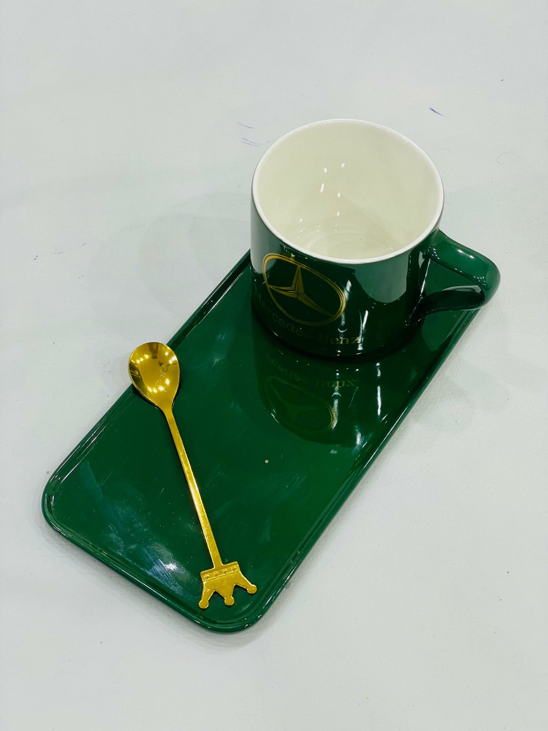 Home Home & Lifestyle Glassware CERAMIC COFFEE MUG WITH SAUCER SET WITH GOLD SPOON