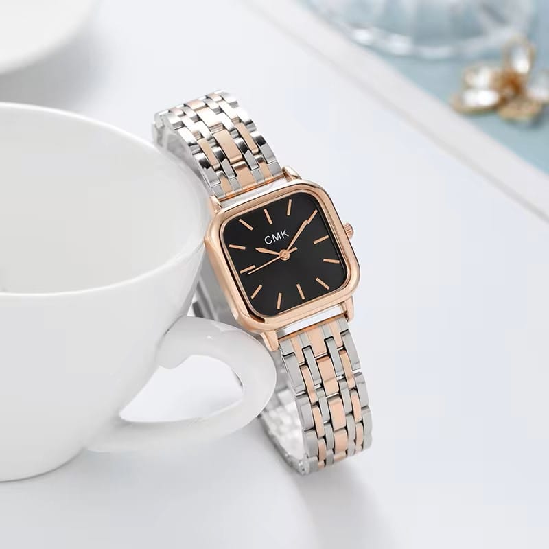 Be the first to review “CMK SQUARE STEEL STRAP WATCH FOR LADIES TWOTONE STRAP BLACK DIAL” Cancel reply