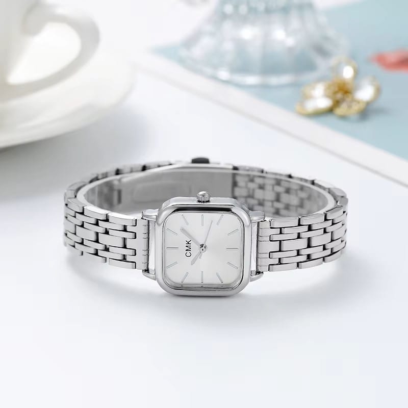 CMK SQUARE STEEL STRAP WATCH FOR LADIES SILVER STRAP WHITE DIAL